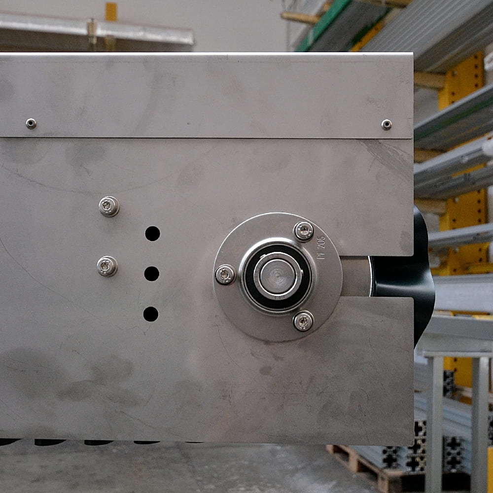 TRIMAT a inclus dans ses catalogues les groupes de produits convoyeurs et convoyeur en acier inoxydable avec bandes uniquement après avoir effectué une analyse de marché approfondie liée à la compatibilité de même avec le système modulaire proposé en profilés extrudés, renonçant par choix à élargir de force sa gamme avec des articles facilement disponibles dans n'importe quel magasin de quincaillerie ou d'outillage.