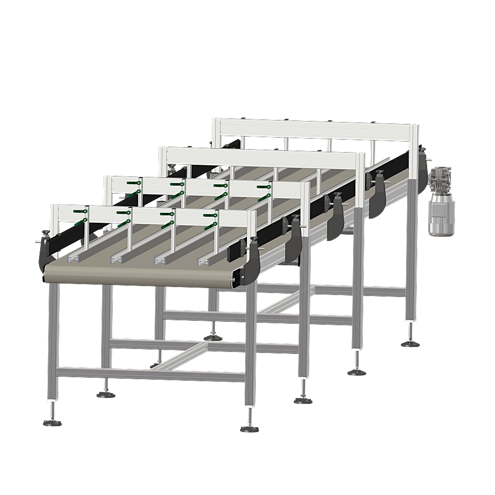 TRIMAT a inclus dans ses catalogues les groupes de produits convoyeurs et système de transport combiné uniquement après avoir effectué une analyse de marché approfondie liée à la compatibilité de même avec le système modulaire proposé en profilés extrudés, renonçant par choix à élargir de force sa gamme avec des articles facilement disponibles dans n'importe quel magasin de quincaillerie ou d'outillage.