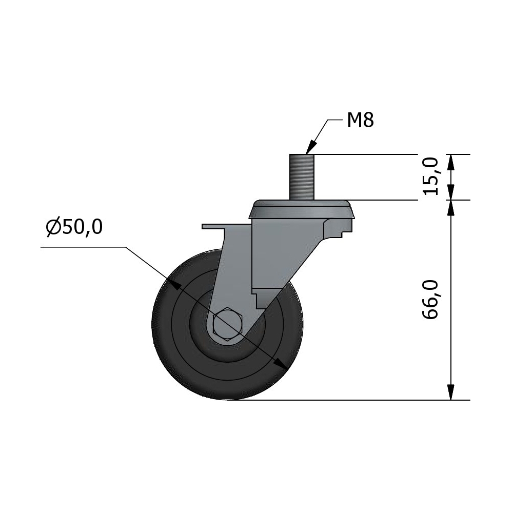| J2362 | ROUE EN CAOUTCHOUC GRIS / PA Ø50 M8x15 GF |